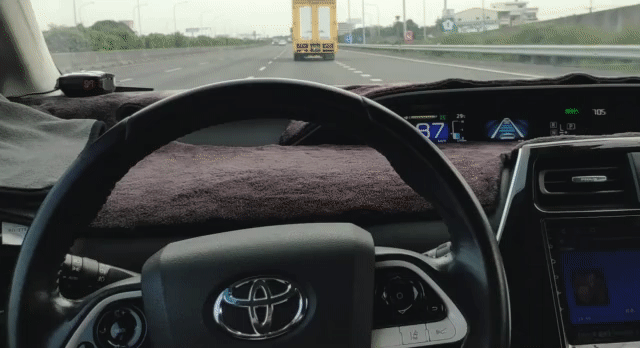 輔助鏡頭是抓標線運算的,不是抓方向盤角度。開啟輔助駕駛時電腦會自己置中不用管它,不過方向盤修正頻率滿高的,車子會微晃明顯不舒服自己就會趕快去換胎(或調胎)定位了。這是我自己車,後座幫我拍的,直線行駛可以看到前輪定位偏掉(偏左-1.7度)狀況,跟車輔助時方向盤自動會一直往右微幅修正(補償+1.7度)來保持車道置中
