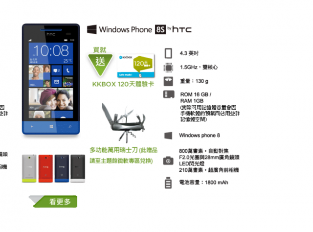 markwangs wrote:官網資訊月的8S規格...(恕刪) 不是我寫錯啦,我只是想表達HTC官網的規格標錯了..http://www.htc.com/tw/2012info_month/list.html看右下角8S的規格,這等規格真是高規,哈哈,要點"更多"進去看才會有正確的規格..因為我是真的想買8S才稍微注意一下,看官網標到8X的規格就很烏龍,不過現在怎麼還沒改阿...<img