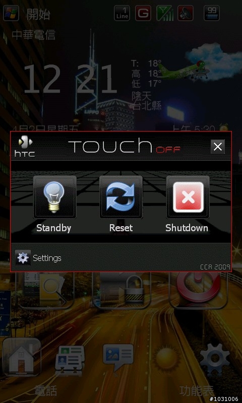 再來個分享 軟啟程式 CCa TouchOff 050_cht ~安裝完是 英文版按左下角的 SettingLanguage: 選擇 Chinese再按 Apply就 中文化了附加壓縮檔: 201004/mobile01-0a4319174b06ae50b6df9aea1dbf7048.zip