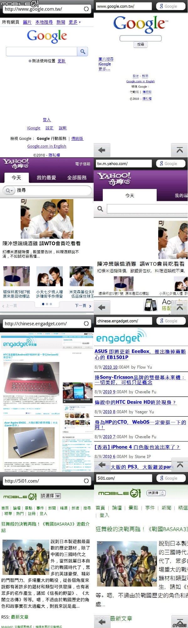 右邊為Android (我想是Opera 9吧?);左邊為WM Opera 10
