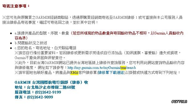 哇!這個售後服務也未免好的太令人訝異了吧!讓我感動的就想在此PO個文,推崇一下。果然是一個國際大廠的服務,謝謝啦!我以後除了GARMIN,一定不會買別家的GPS啦!