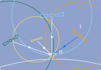 GPS的設計有點特殊.他用4顆衛星來定位.基本上是三顆定出你的三維交叉位置. (II)第四顆( I )來複查Δt即衛星與接收機之間的時間差,才能正確定位.在這種條件下,三顆衛星定位, 系統仍會飄移就是這原因.圖片來源:TOMTOM美國官網
