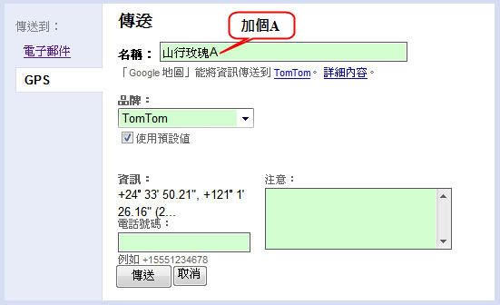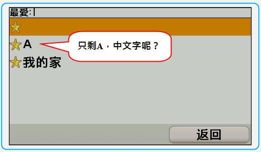 剛使用google地圖要將景點傳送至我的最愛,發現中文字失蹤了,GO630已更新至最新檔,TOMTOM HOME也是目前最新檔,記得未更新之前傳送都正常啊!再把景點加個英文字試試看:麻煩各位大大試試看!