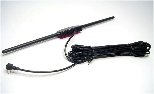 五米長的車用天線,這種天線最佳的收訊位置在車輛的保險桿下方接收由地表折射過來的訊號(之前有認識的汽修師傅教我的效果很好喔):