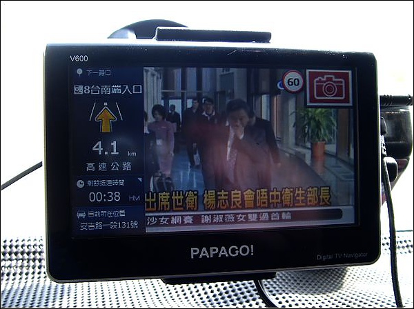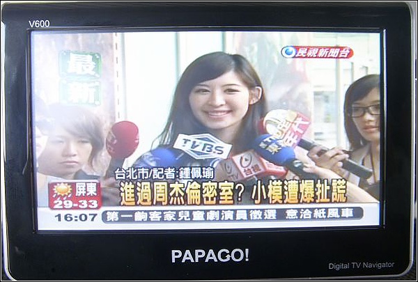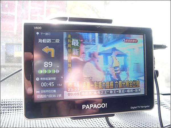 PAPAGO!V600的數位電視接收效果非常好,由於他內建了雙天線接收器,所以不論在市區或鄉間我都幾乎沒遇過收訊不良的情況,這也是我幾年前測過飛來訊之後好不容易又測到另一台收視效果直逼車機等級的數位電視導航機,而且PAPAGO!V600繼承了T900的分割視窗導航的優點,所以邊導航邊看電視對PAPAGO!V600來說根本就是跟呼吸一樣自然的事了: