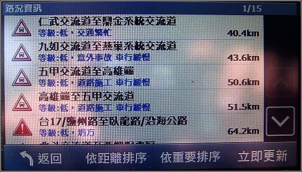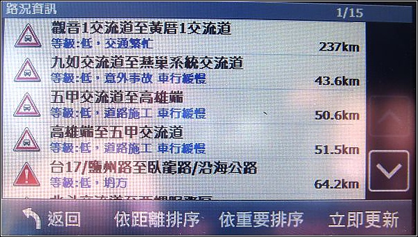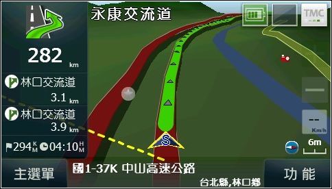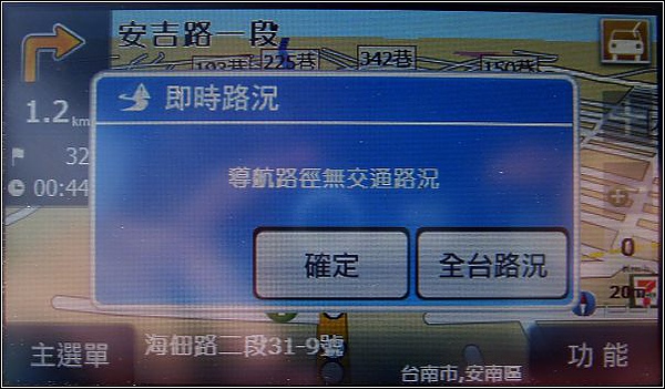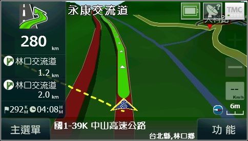 設定目的地後在畫面右上角可以點選TMC即時路況功能: