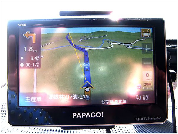 進入重頭戲---PAPAGO!7的導航部分介紹,在城市都會區裡面PAPAGO!V600的PAPAGO!7除了左上角有聲控命令以外,其實看不太出來差別;