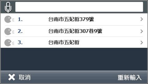 地址語音辨識,訣竅是依照縣市、路名、門牌號碼的順序講: