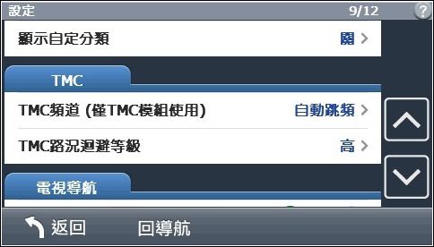 最後是PAPAGO!V600的設定選項,主要多了TMC與數位電視的設定選項: