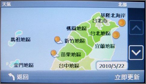 天氣功能則是透過TMC得知全省各地的即時氣象資訊(需連接車充後才有作用);