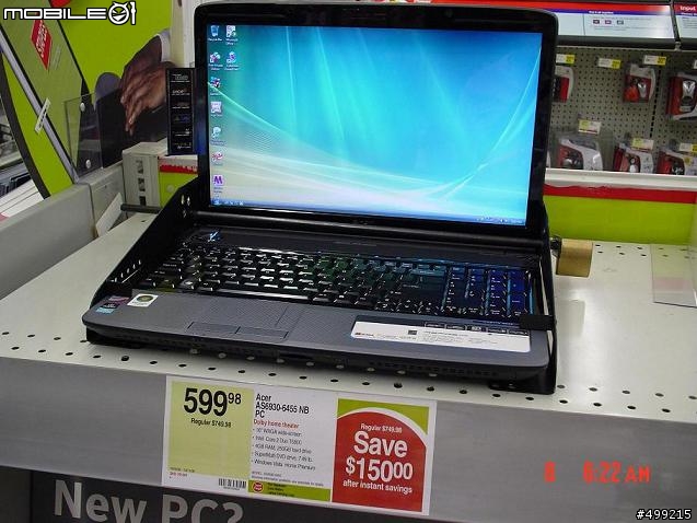 今天看到一台新機:Aspire 6530G-822G32一開始看到型號,沒覺得什麼特別的,以為只是新AMD CPU的機種而已。等真看到實機才發現一些特別的地方,取消6920G、6935G上的多媒體飛梭觸控台,改成獨立數字鍵盤,不過還是有多媒體快捷鍵;更好玩的是,顯卡式是採用ATI HD 3470 Hybrid X2,不知道這功能在nb上效果如何?!真沒想到台灣是先出16吋的機種