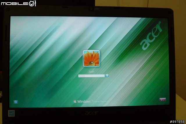 開機後的登入畫面(配備 Win 7 Home Premium)