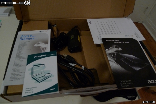 箱子打開後,只有筆電、電源線和幾張紙,沒看到任何光碟(拍照時筆電暫時放在旁邊,所以沒有入鏡)