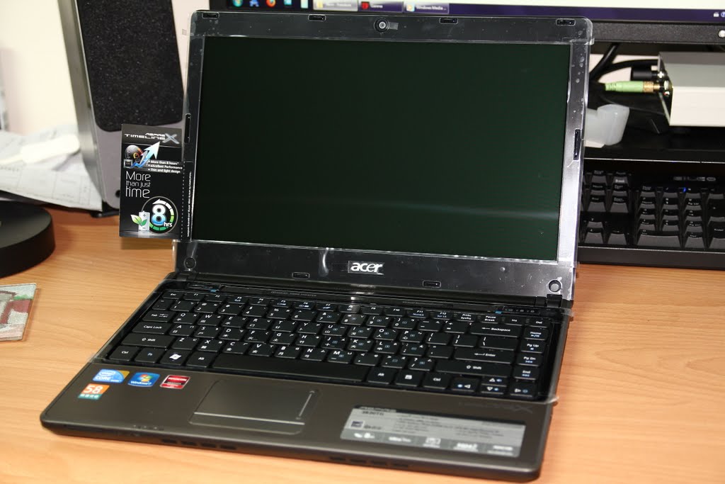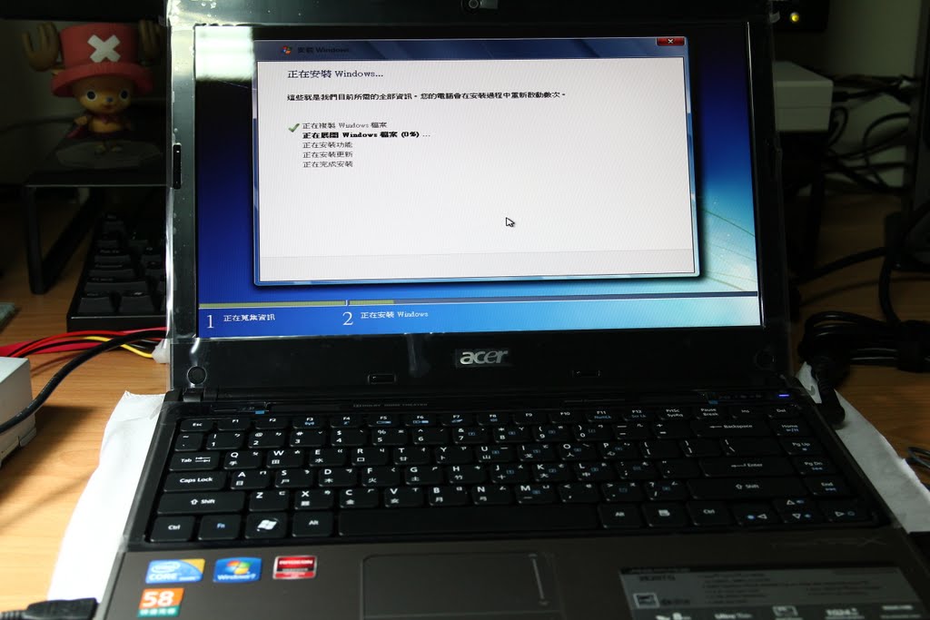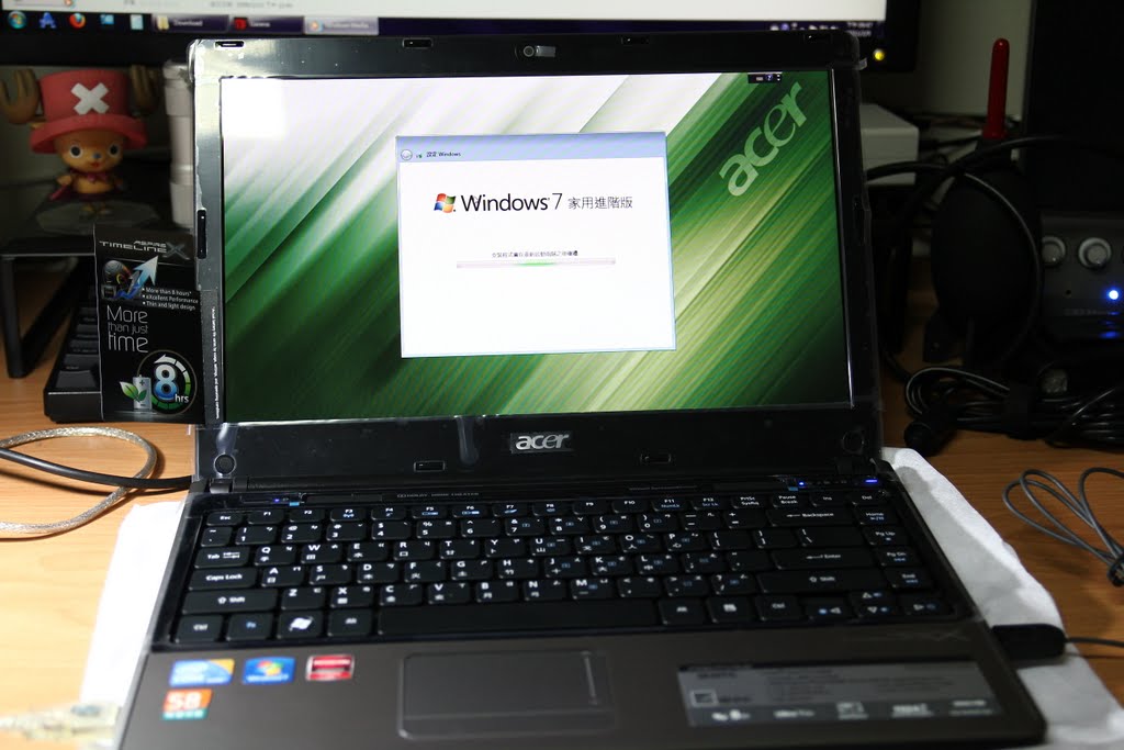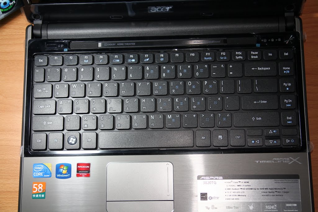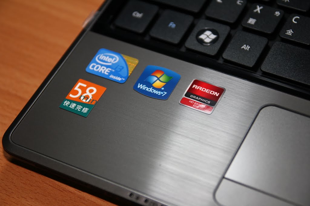 上面的貼紙,Intel i3、Windows7、AMD顯示晶片、acer58分鐘快速完修,這些貼紙也是7天後就不會看到了