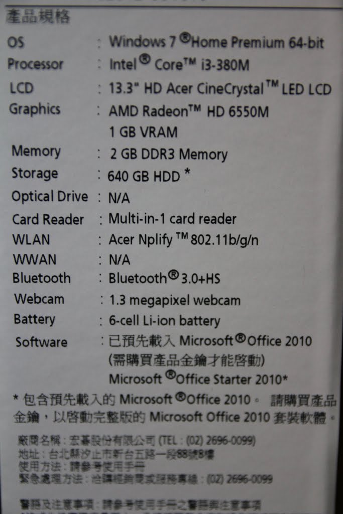 會看到這台是意外點到的,我在拍賣網和購物網慢慢挑時只有看到i3 370+ATI5670,那時大約4成的心在這台上面,其它6成還在到處飄,結果看到新規格更新,改成i3 380+AMD6550,整個等級又提高一小級,所以那隻稻草就壓倒我了,買回來用的時候真的挺讚嘆科技進步,小小薄薄的一台居然可以玩決勝時刻6...,在30年前這台會被當成怪物筆電,扯遠了,這台的規格是我心中的黃金組合,集效能、輕薄、長效於一身,唯一有個小缺點,他的螢幕畫質不大好,感覺就是有一層白白的東西蓋在上面,對比度有點差,我微調了很久才調成我接受的狀態,期他就沒有大缺點了,看完之後希望大家以後買筆電也可以找到理想中的機器。