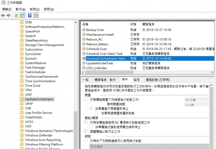 測試了幾次,目前是每次睡眠都會發生被自動喚醒…只是時間長短不同〜---------------------------------------------------------我查了一些指令,底下這個指令可找出原兇(應該)!原兇應該是工作排程器中的Universal Orchestrator Start自動喚醒。不過目前碰到的問題是我的管理者帳號竟然不能修改!?我在該內容的安全性選項中將SYSTEM改為我的帳號,卻都說沒有權限更改…不過在使用者群組中卻找不到SYSTEM這個群組?在還沒解決之前是先用「休眠」來取代「睡眠」。