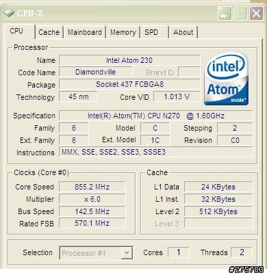========================================================= 後來發現進Bios開啟MaxCPUID Value Limit Super mode時核心溫度在1710MHz~855的範圍跳動 有時工作才跳到12x的倍頻=>1710MHz 休息時掉下來6x倍頻=>855.2MHx 只是從來沒看到有Intel Atom 230的字樣....