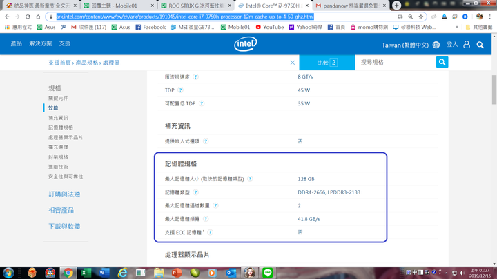RHTZ wrote:規格預載 DDR4-2666 8GB so-dimm, 一開始以為是 on-board RAM, 但拆開後才發現到原來那條8G是可以拆下來的, 因此未來想擴充是可以直上2條16GB的. 其實, 根據 Intel 官方所提供的資訊 : Core i7-9750H 在雙通道的水準之下, 記憶體容量最高可達 128GB !!不過, 這可能也要等市面上有單隻 64GB DDR4 記憶體在市場開始正式銷售後才能佐証.https://ark.intel.com/content/www/tw/zh/ark/products/191045/intel-core-i7-9750h-processor-12m-cache-up-to-4-50-ghz.html在目前市面上可銷售的記憶體來說, 至少應該可以相容於單隻 32GB, 讓總容量達到 32GB X 2 = 64GB目前市面上已有少數品牌開始少量的銷售單隻 32GB.例如創見 TS4GSH64V6EDRAM : (2Gx8)x16敘述 : 32GB DDR4 2666 SO-DIMM 2Rx8