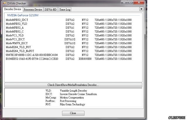可以請有入手UL-30vt的版友幫忙跑一下dxva checkerhttp://bluesky23.hp.infoseek.co.jp/dxvac/DXVAChecker32_2.1.0.0.zip想了解一下G210M的硬解能力,可以跑完後貼跟這個網頁最左邊上方第一張一樣的圖嗎?可以的話感激不盡。http://bluesky23.hp.infoseek.co.jp/dxvac/ss.html我也想入手這台,也請樓主pm我店家資訊。