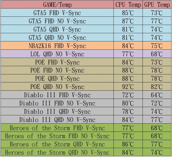 newcater wrote:我是有考慮想買這台...(恕刪) SORRY,風扇噪音的部分有點難以測試,因為這算比較主觀的問題如果你是以暗黑3來說,建議把垂直同步打開,可看我另一篇的測試因暗黑3對於GTX970M的效能來說不成什麼問題,特效全開也OK在垂直同步開啟後CPU的溫度最高僅72度GPU的溫度最高僅64度所以這樣的溫度其實風扇是聽不到什麼風切聲的附上當時測試的溫度紀錄表格給你參考
