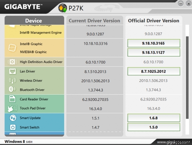 會自己去比對驅動程式有沒有新版的