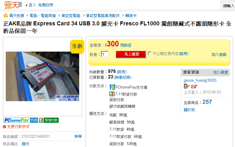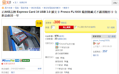 splendors wrote: 那摸 HP321 幹嘛硬要用上 2條相同規格的 4GB DRAM/ Transcend DDR3/1333 (..爽度增加而已)???!!!...(恕刪)近日, 又找到這個傢俬, 得以~ 解除 HP Cpq321的 ExpressCard/34 (34 mm wide)介面的使用封印.. 因為購入 HP Cpq321至今, 那個 ExpressCard/34 (34 mm wide) 介面使用仍閒置不用。 在因綠際會接觸"網拍"購物, 才發現到這項傢俬.. 正AKE品牌 Express Card 34 USB 3.0 擴充卡 Fresco FL1000 獨創隱藏式不露頭隱形卡