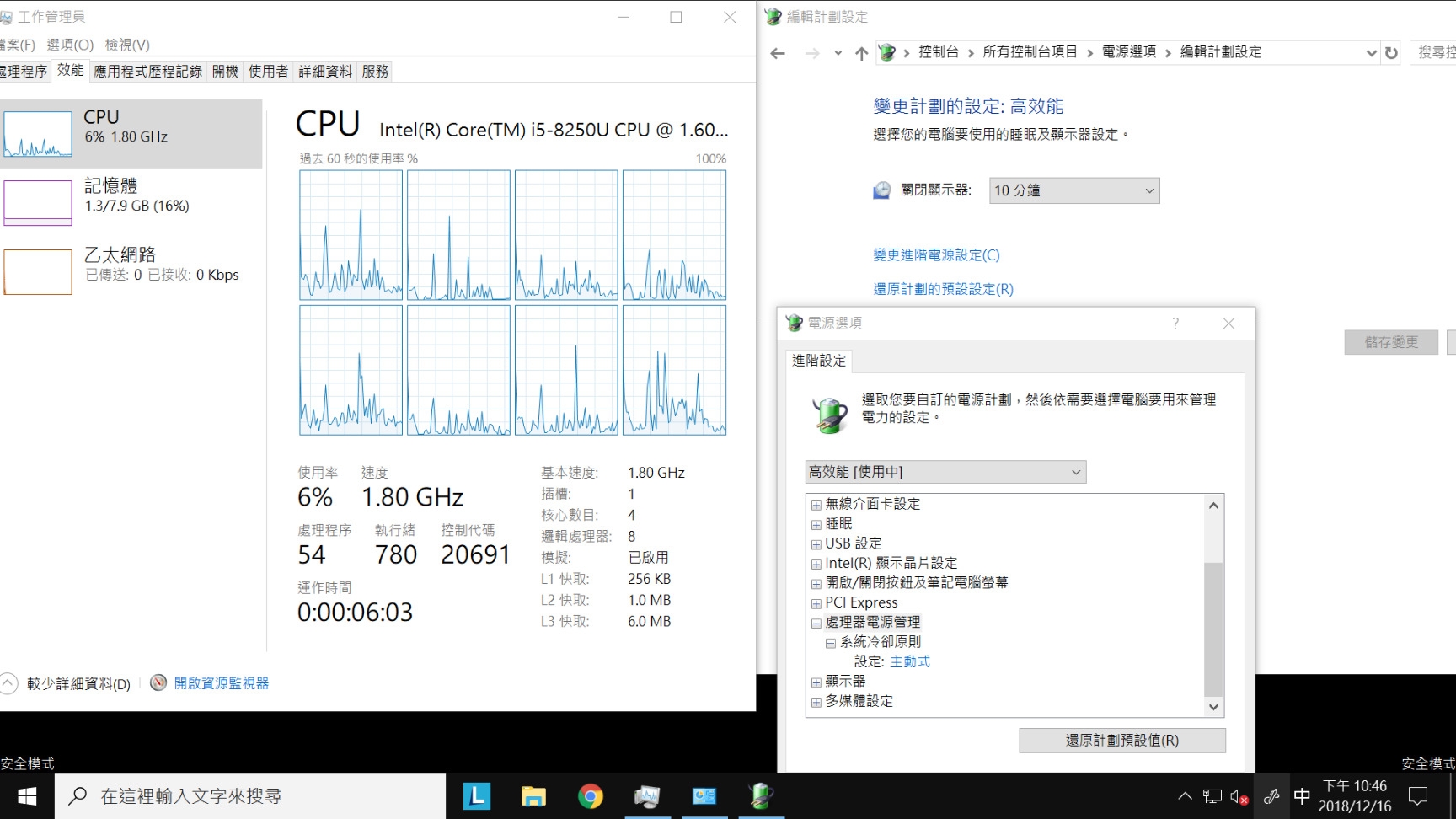 DKS2000 wrote:進入安全模式查看一...(恕刪) 安全模式(含網路)裡CPU是運作在基本時脈1.8GHz的可以感覺到比較順了一點不過回來正常模式 又降成0.4GHz了但我可不想以後都用安全模式阿真心懷念之前能跑到3.4G的日子