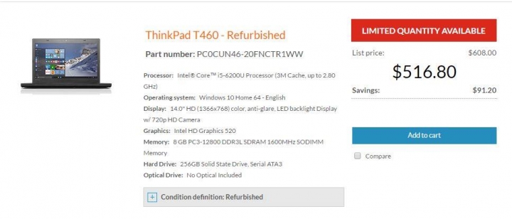 官方T430S的最高CPU規格i7-3520M與T460的CPU規格(i7-6600u)效能比較,沒有差別太多!