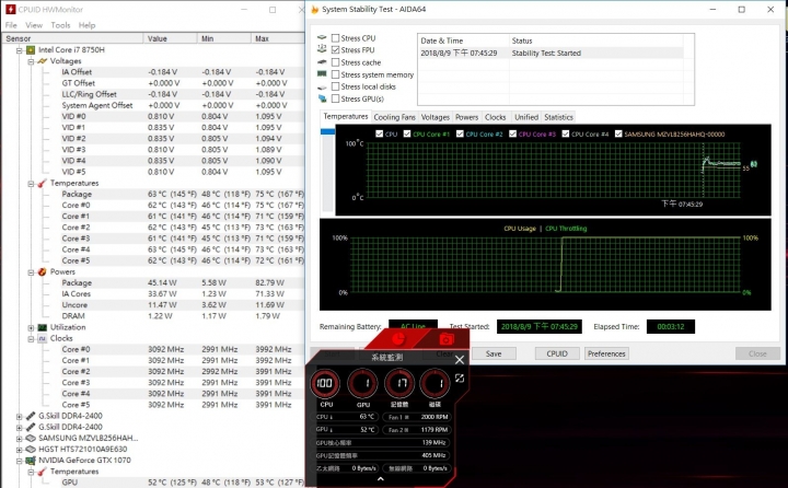 可見GT63原廠狀態下是壓不太住I7-8750H跑FPU燒機的