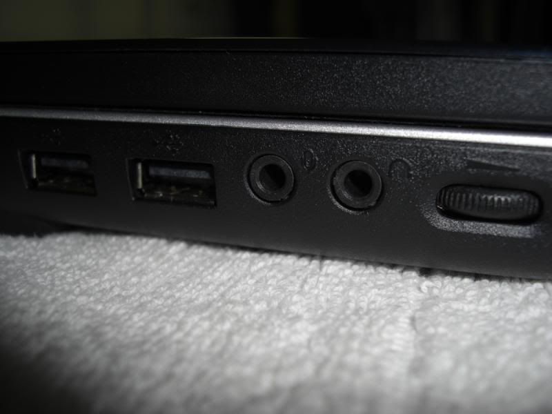 左側有d-sub,散熱排,USBx2排一字型,賣克和耳機孔,還有音量調節鈕