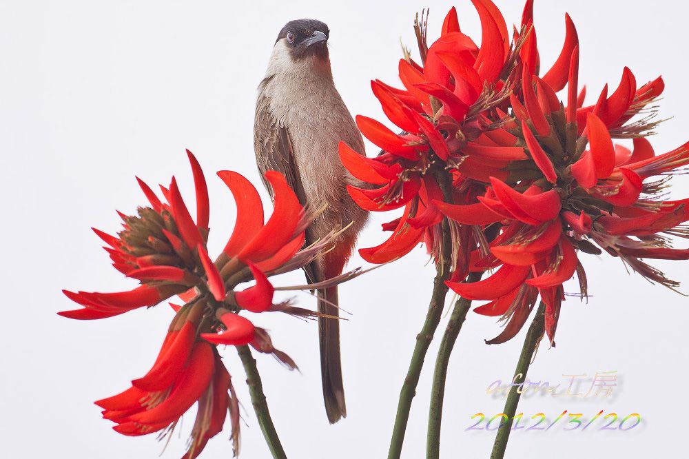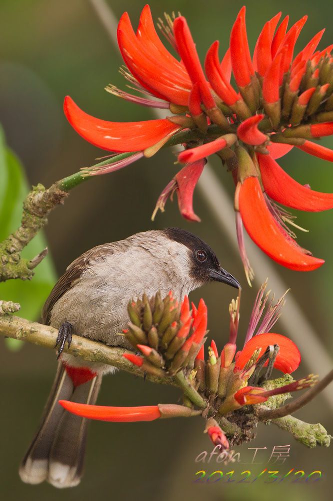 夠酷的白喉其實大自然應該給了我們很多啟發,例如在服飾及打扮方面,相信很多動物更是模仿的對象。01.記得超人的造型嗎?對,就是將紅色內褲外穿的那位,其實他應該向這隻鳥繳付權利金的。02.看這隻鳥的屁屁紅得就像旁邊的象牙花一般。03.牠不是超人,牠是白喉紅臀鵯Sooty-headed Bulbul,學名Pycnonotus aurigaster,分類為:雀形目>鵯科>鵯屬04.牠不單有艷紅的屁屁,還有個小崩頭。05.有這前衛的髮型及底褲外穿的勇氣,夠酷了吧。3-8月是雀鳥繁殖季節,牠們可能會因為受到騷擾而放棄回巢育雛。為避免爭相仿傚而導致慘劇發生,請各位勿在這段時間內貼出有巢、雛幼鳥、親鳥抱卵及餵飼的照片。感激。afon