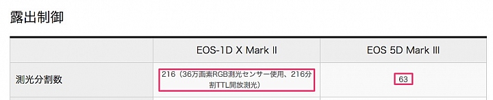 約36万画素RGB+IR測光センサー使用、216分割TTL開放測光 EOS iSA(Intelligent Subject Analysis)システム