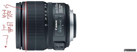 yzchen wrote:Canon EF-S...(恕刪) 銀環? 有巴 小條的在15-85mm身體"變焦環"的外框邊上 還有一條好細的 很低調圖片引自 ↓http://www.usa.canon.com/consumer/controller?act=ModelInfoAct&fcategoryid=149&modelid=191967D KIT 15-85mm 7W以下我接受 想太多了 最少也要1700+800USD(台幣8萬)巴...性能夠好 7D!