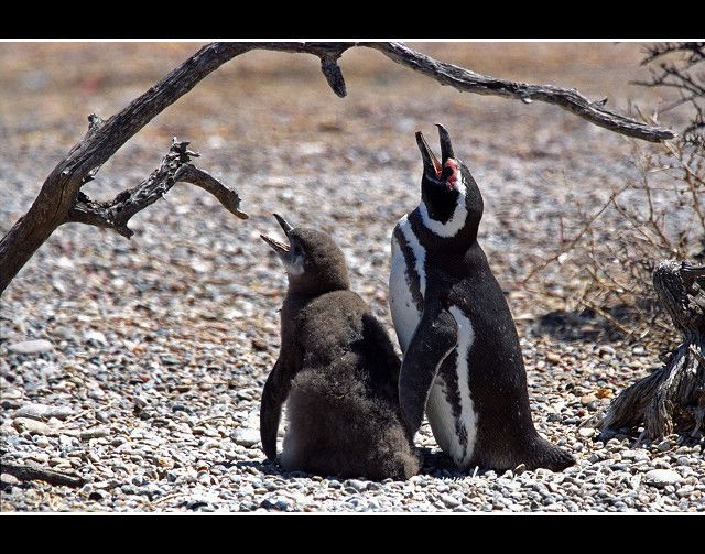 Punta Tombo企鵝保護區,麥哲倫企鵝媽媽餵食著牠的孩子們: 到Punta Tombo看企鵝 (Chubut省, Patagonia, 阿根廷)