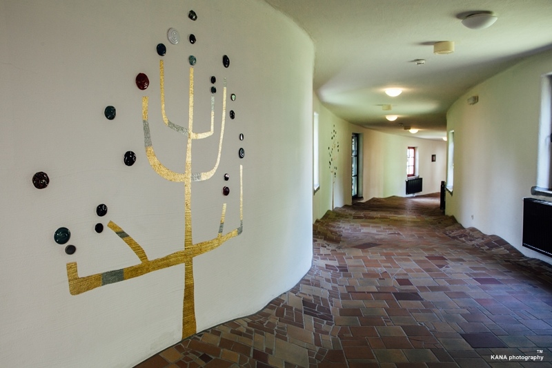 強調的是人與建築物與植物(自然)的共生,百水先生的作品都有幾個特殊的標誌,