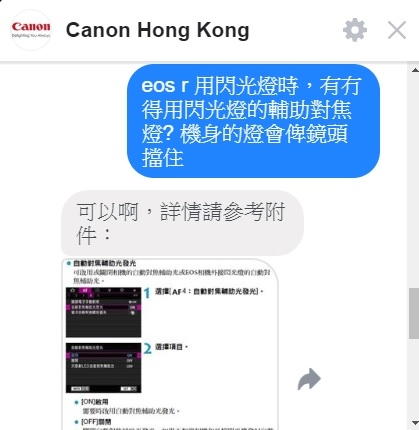 我用了430exiii 試,結果一樣是閃燈輔助燈沒開,只有EosR 機身的輔助燈啟動。反之用在單反機身就沒問題。