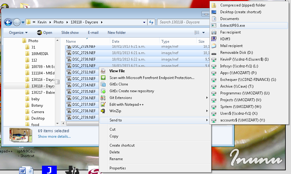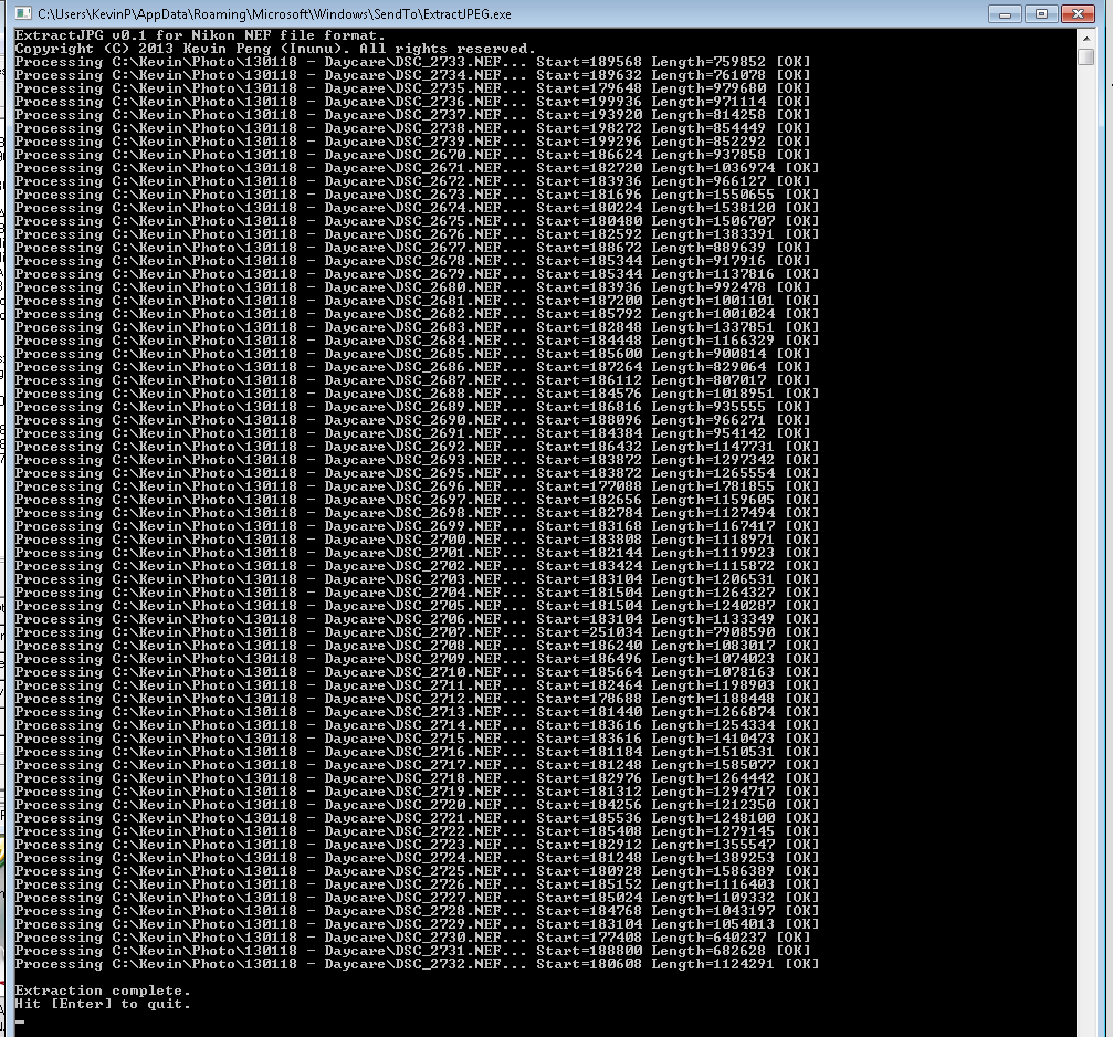 1. 用檔案總管選擇 NEF 檔案, 按滑鼠右鍵, 選 SentTo (傳送到) 底下的 ExtractJPEG.exe