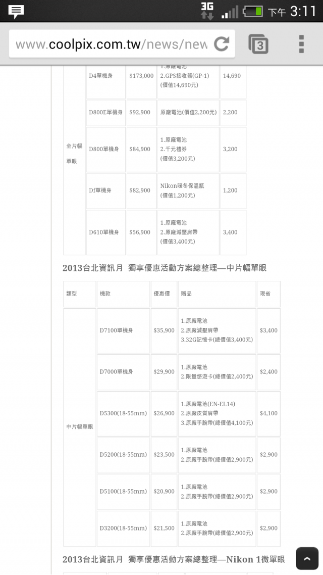 為了將優惠機會與消費者直接分享,Nikon於世貿一館C區入口的Nikon攤位(攤位號碼B1232)首度特設福利品專區,在會場出清展示福利品,全幅單眼等最低66折起,D800原價82,900 ; 福利品66折-現金價54,714。隨身相機3折起,S2500原價2,990,福利品3折–現金價897。P300原價10,900 ; 福利品45折-現金價4,905。所有福利品皆享1年公司保固,數量有限,現場以現金價搶購,恕不接受信用卡,要搶便宜的朋友,資訊月快到Nikon攤位挖寶吧!