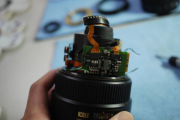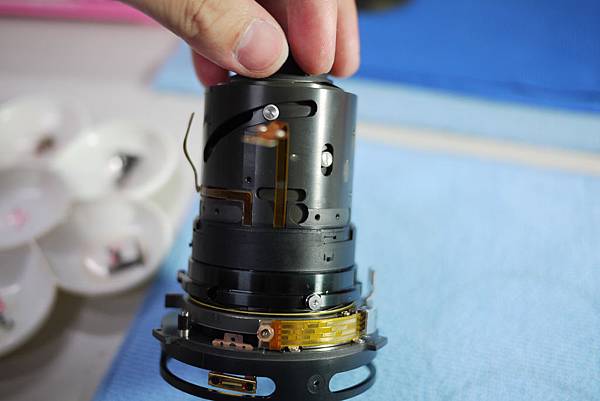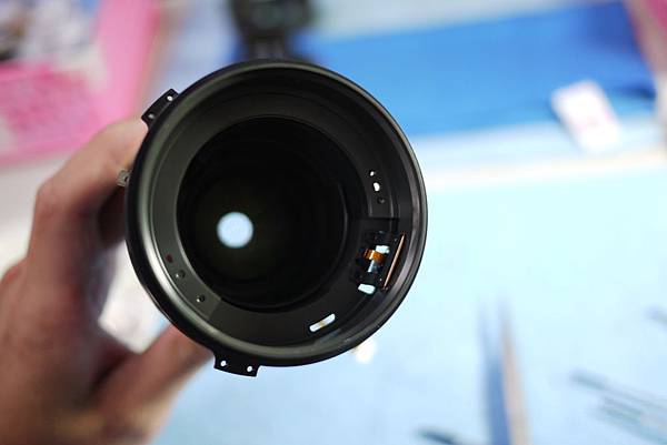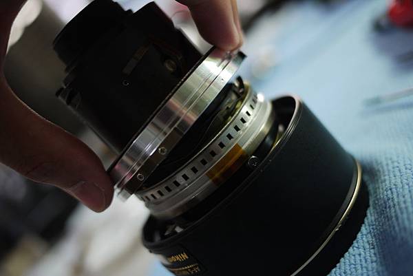 於是他直接拆開鏡頭(圖二),直到到最後的套筒發現螺絲打不開(圖五)~~(Nikon的螺絲有特殊處理,真的很不容易轉開)