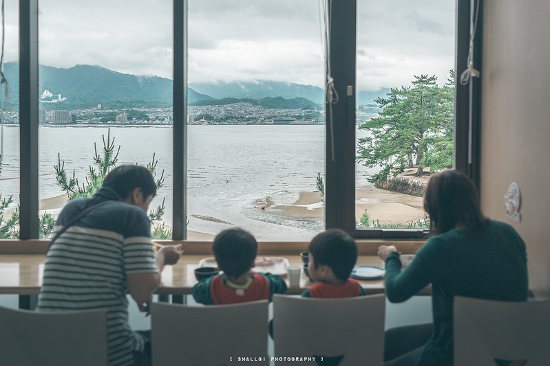 ↓ 在宮島水族館內的餐廳,捕捉下日本父母帶著雙胞胎的兒子用餐的可愛畫面