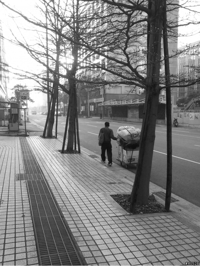 一早的內湖街道,阿伯的車上整理得很整齊,