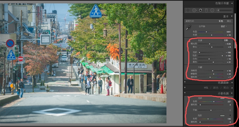 Brian86215 wrote:大大的圖片&後製風格好美,看完也好想親自去一趟! (不知道您願不願意分享一下所使用的風格檔......) 謝謝~我沒有固定的風格檔哦!幾乎每張都不太一樣LR我也是初學,只會基本的風景照大概就是用先用LR調整明暗度、亮部會加點藍色、暗部加點綠色(圖片兩個紅色圈選處)最後我都會再進ps套用一些濾鏡之類的提供參考~~