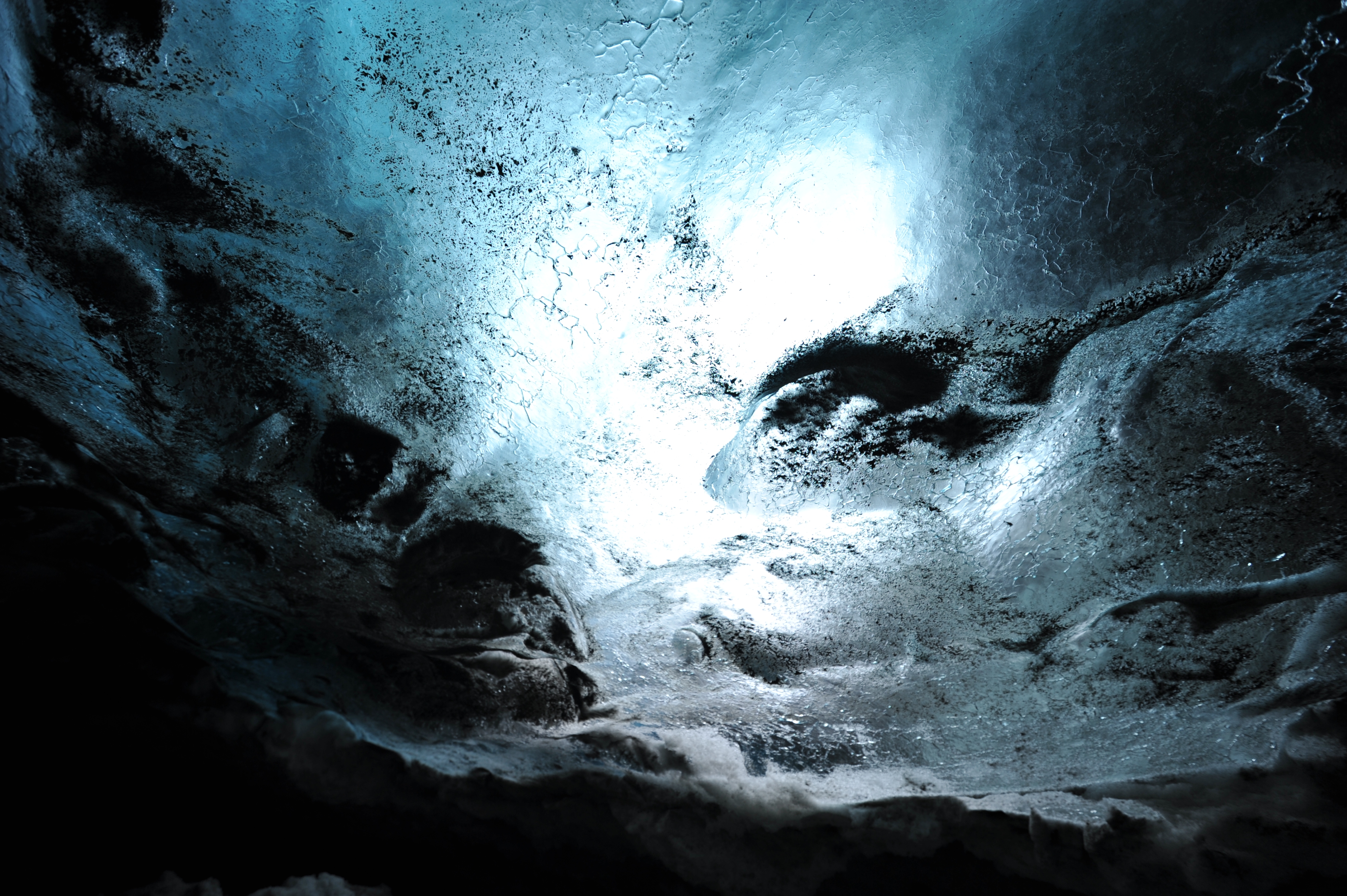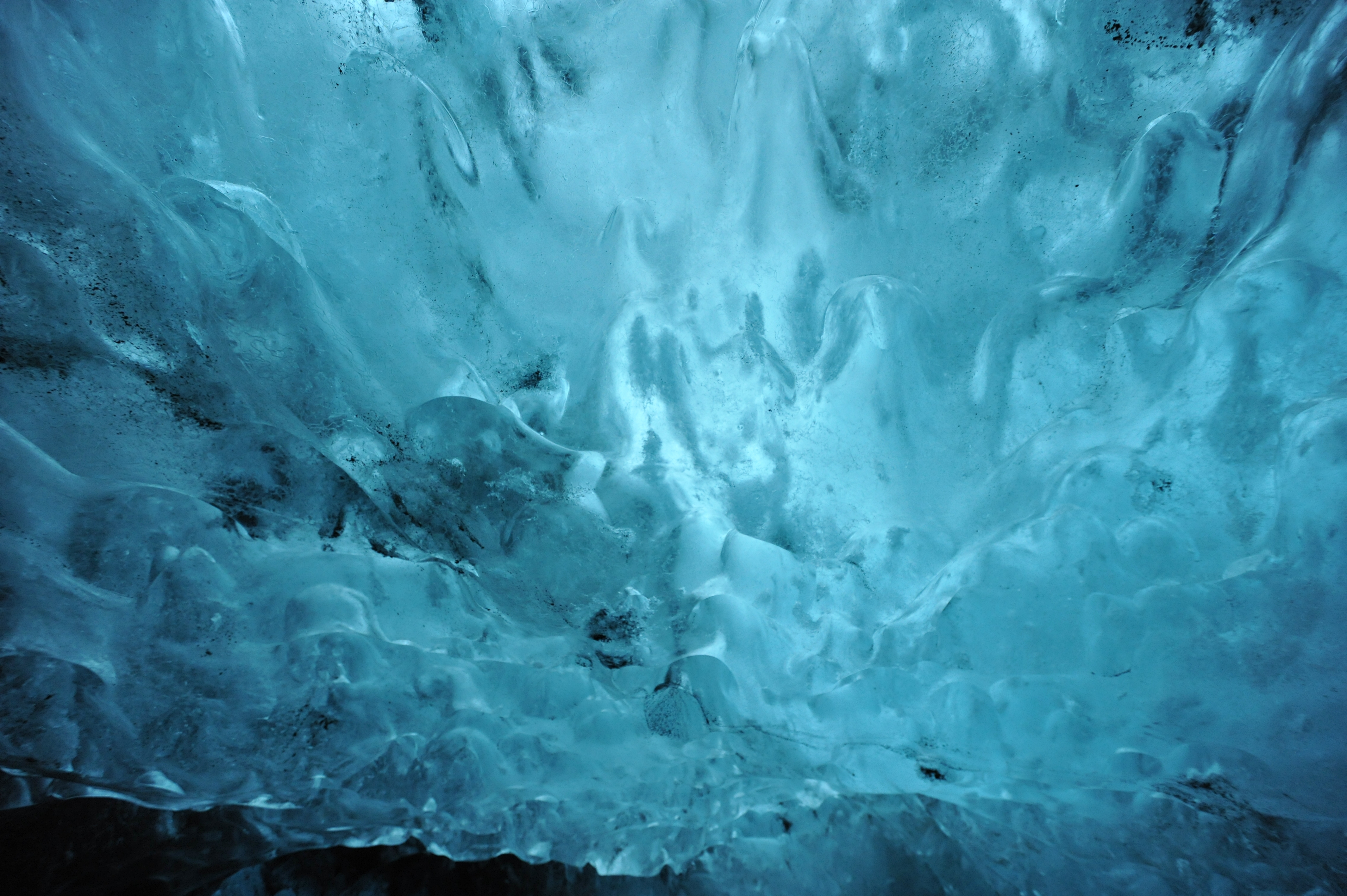 在藍冰洞裡面看似在海浪裡面被冰凍著,顯示出波浪型