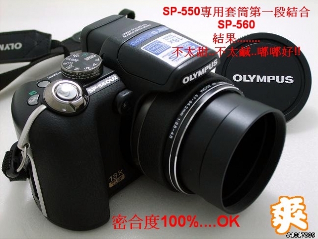 今年2月底買了一台SP-560,目前正在尋找適用的套筒,所以到處爬文,得到結果有2種,560專用套筒....型式是1筒到底,550則是2段式(也就是Samblin大大買的這種)!!因為翻遍資料,得到的資訊都無法確定2者是否通用,乾脆2種都買來試試吧!!