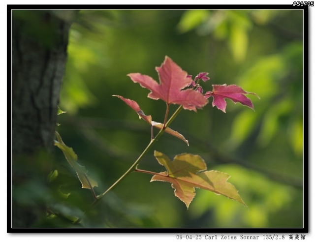 E500+Carl Zeiss Sonnar 135mm F2.8 老鏡,攝於高美館。縮圖、銳化,無調色。剛好遇到幾棵楓香。會咬人的紅面番鴨巧遇五色鳥的家,逆光紫邊嚴重,不該跟逆光對幹的...樹上有隻五色鳥,逆光紫邊嚴重,不該跟逆光對幹的...