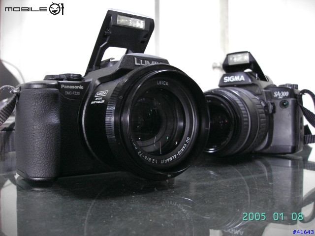 我弟這個星期也買了一台FZ-20,我本來也想買一台單眼數位相機(目標N社的D70),不過今天玩了一下我弟的FZ-20覺得是一款要入門單眼像機前當作練習機也不錯,等玩出心得再下手玩更高檔的單眼相機。這就好比是相機中的手自排款。後面是已經退休的傳統單眼相機(好幾年前買的,因為摔機完全無法使用了,只當收藏用)缺點:使用遮光罩,然後開啟內建閃光燈,拍出來的照片,下方會會拍成黑色圓弧,建議要用外閃↓