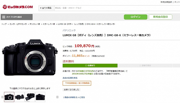 dean526 wrote:如果去日本購買單機...(恕刪) 剛剛在BIC C的網站上看到的價格提供給大家參考G8 單機身G8 標準組(配搭12-60mm/F3.5-5.6 ASPH./POWER O.I.S.)