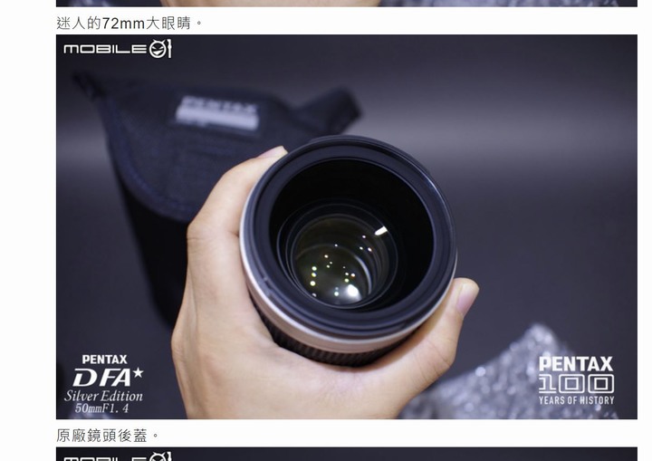 屁股超人 wrote:只是說跟鏡頭裝個同色系的保護鏡怎麼後面我都聽不懂了有看樓主的另一篇嗎?改裝出發的星巫師,PENTAX HD DFA★ 50/1.4 SE 銀影紀念版開箱其實新版銀鏡的前端根本不是銀的,就算是裝遮光罩後也看不見,而且各家所謂的銀色差異甚大,拼命找來也未必好看。