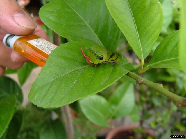 夾竹桃天蛾的幼蟲,應該是終齡的,你家的日日春大概肯定會被啃光我養過幾隻,蠻好養的,但在盆栽裏怕他要找地方成蛹。會跑到路上去如果想觀察成蟲,可以在前蛹時把他移到飼養箱,記得要放些粗樹枝直立起來讓他羽化這是成蟲這是前蛹另上面有人貼很像的幼蟲,那也是天蛾科的,但不是夾竹桃天蛾