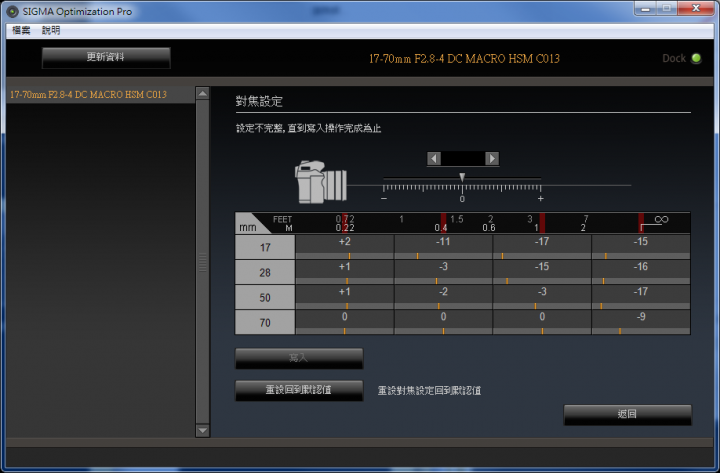 舊鏡只能調廣角望遠兩湍 就不見得調得準了 更何況現在是16個數值要細調